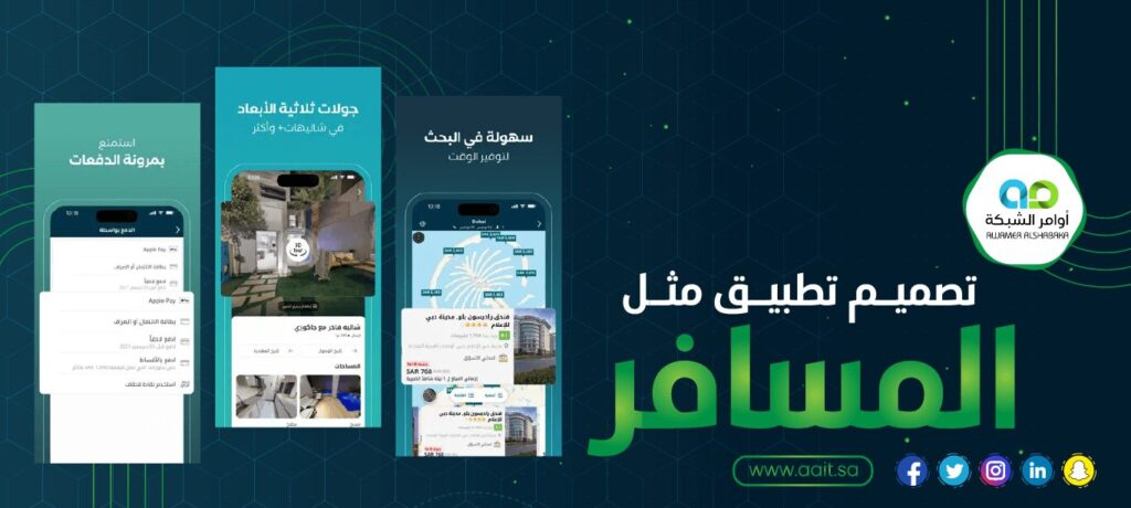 من هنا يأتي دور شركة أوامر الشبكة التي تتخصص في تصميم تطبيق حجز تذاكر السفر والفنادق بشكل احترافي يجمع بين الراحة، التقنية، والتجربة الفريدة للمستخدمين.